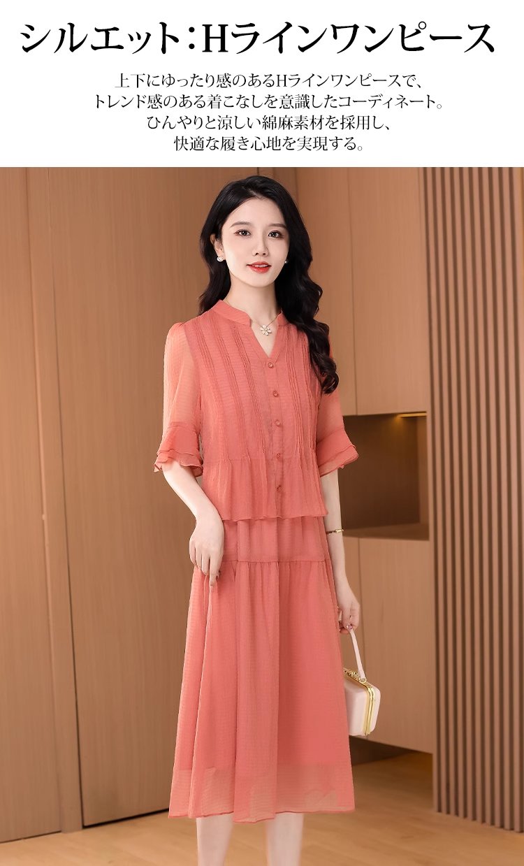 コットンリネンのレイヤードワンピース
